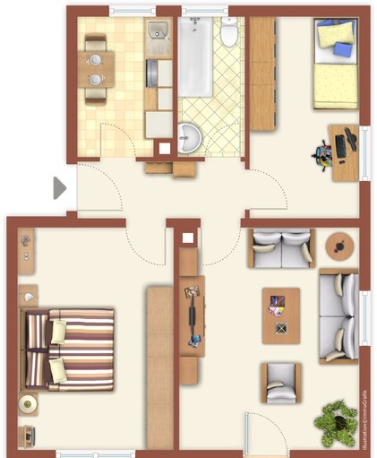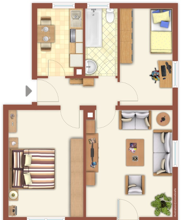 3-Zimmer-Wohnung ohne Balkon, 1.OG